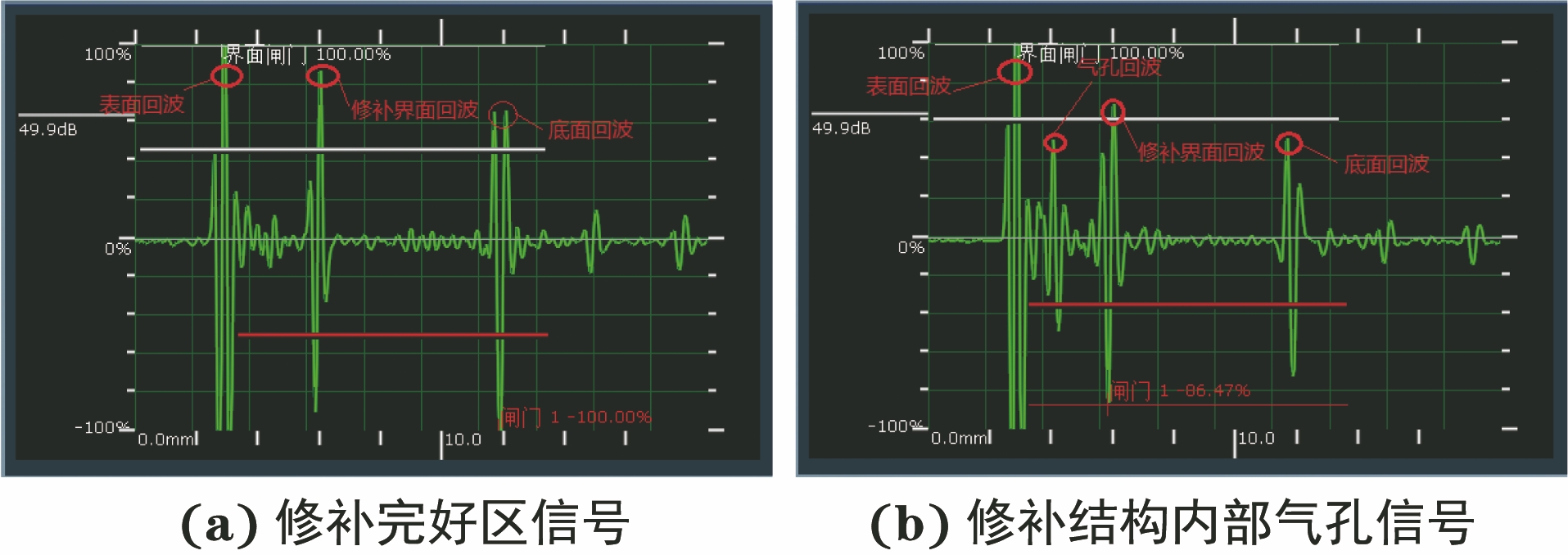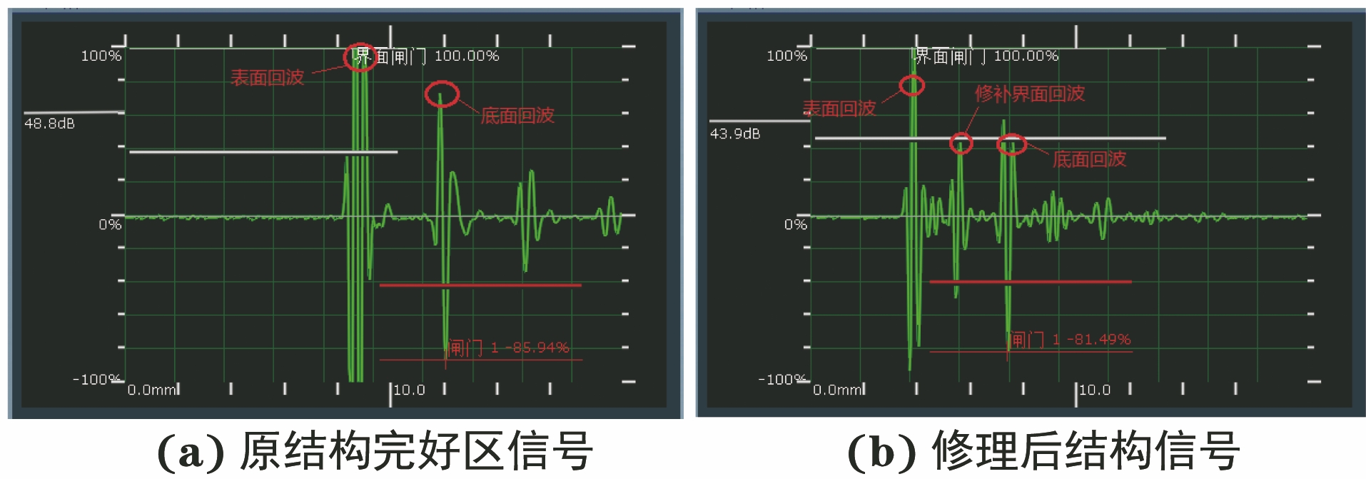 Scarf repairs are the most common method of repairing composite structures. With the development of repair technology, the problems of strength evaluation and damage detection of repaired structures need to be solved urgently. Taking the repaired laminate structure as an example, the possible types of defects and the ultrasonic characteristic signals were summarized and analyzed, which were compared and verified with repair process characteristic, to provide data accumulation for the establishment of complete ultrasonic detection criteria for such structural defects.