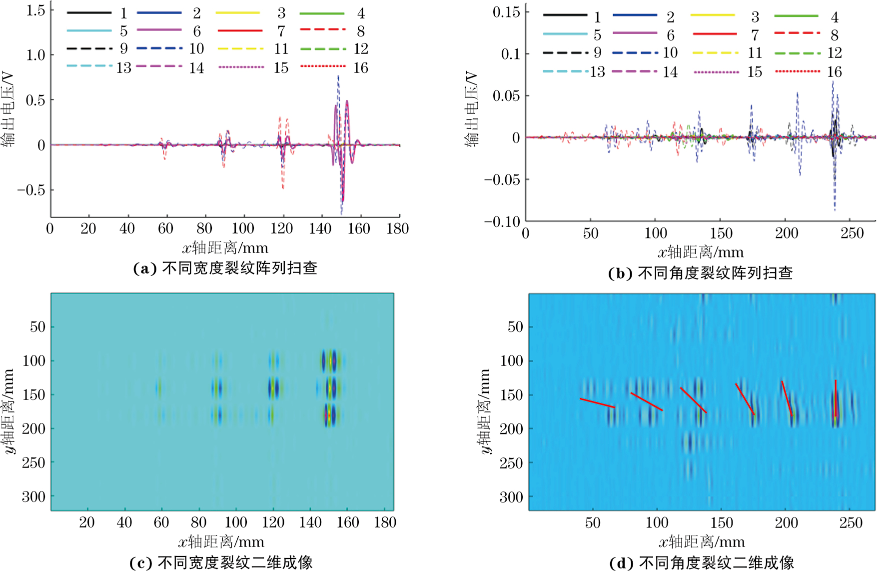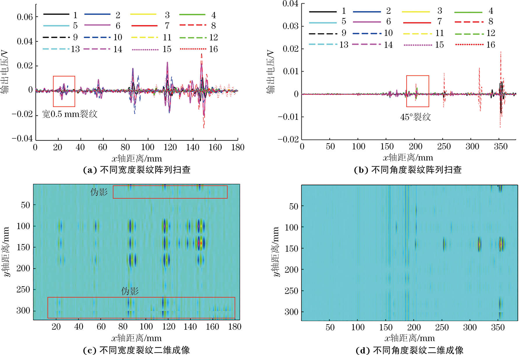 摘要: 风机塔筒焊缝缺陷种类多样,不仅对塔筒的结构完整性构成重大威胁,对焊接区的无损检测也提出了相当大的挑战。采用漏磁与磁扰动检测方法对风机塔筒焊缝区域进行检测并对比其检测性能,为利用两种方法综合检测塔筒焊缝缺陷提供依据。首先,研制了适于焊缝缺陷检测的漏磁与磁扰动阵列传感器,制备了4种类型的缺陷试样并构建了检测试验平台;其次,试验获得了不同缺陷的漏磁与磁扰动多通道阵列扫查结果,并采用插值成像的方法对缺陷进行了二维成像;最后,利用检测结果对漏磁与磁扰动检测的性能进行了对比分析。结果表明,漏磁检测在小宽度裂纹检测和圆孔深度表征方面优于磁扰动检测,磁扰动则对小角度裂纹和小尺寸圆孔缺陷的检出性能更好。Abstract: The turbine tower exhibits a variety of weld defects, which not only pose a significant threat to its structural integrity but also present a substantial challenge for non-destructive testing of the welding zone. This study investigated and compared the detection methods and characteristics of magnetic flux leakage (MFL) and magnetic field disturbance (MFD) in the weld area of the turbine tower through experimental analysis, providing a foundation for comprehensive detection of weld defects using both approaches. Firstly, the MFL and MFD array sensors specifically designed for weld defect detection were developed. Additionally, four types of defect samples and constructed a comprehensive test platform were prepared. Secondly, Scanning results were obtained using the MFL and magnetic disturbance multi-channel arrays under various defect conditions. These defects were then imaged using an interpolation imaging method. Finally, by comparing and analyzing the detection results, it was found that MFL detection outperformed MFD in terms of detecting small-width cracks and characterizing hole depths. On the other hand, MFD was more effective in detecting small-angle cracks and smaller-sized hole defects.