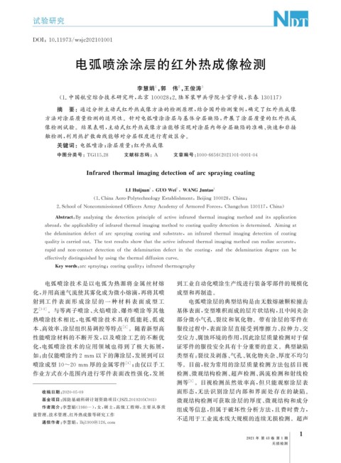 关键词:电弧喷涂; 涂层质量; 红外热成像