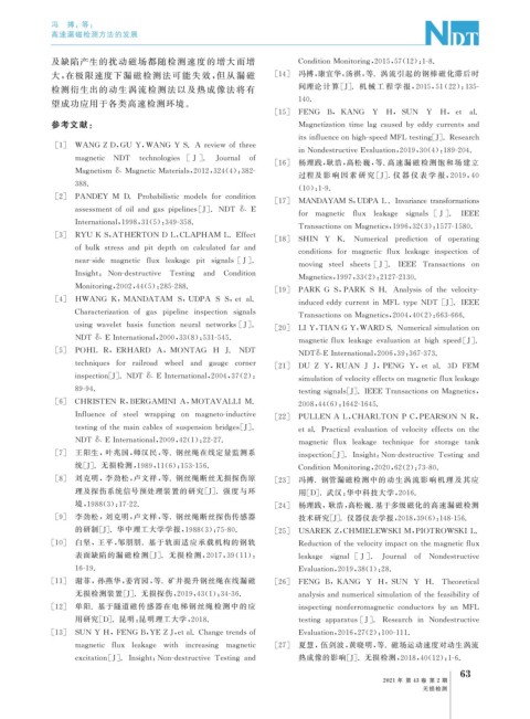 及缺陷产生的扰动磁场都随检测速度的增大而增 ConditionMonitorin g , 2015 , 57 ( 12 ): 1-8.