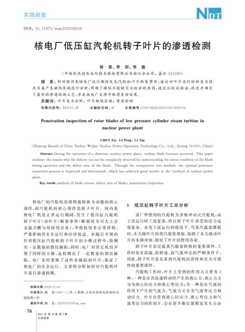 核电厂低压缸汽轮机转子叶片的渗透检测