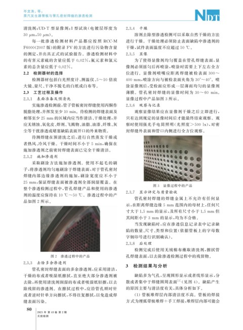 2.3 工艺过程及操作 薄膜。管 孔 密 封 焊 缝 的 显 像 时 间 为 30~60 min 。