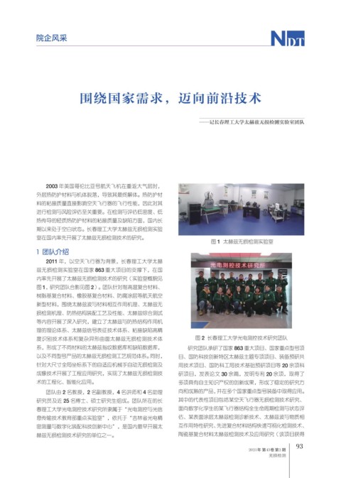 研究员及近 25 名博士、硕士研究生组成。团队所在的长 其中的代表性项目包括某空天飞行器无损检测技术研究、