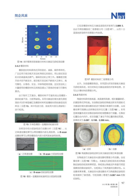 测技术对阶梯型赭红色橡胶材料和金属板衬底粘接组成的 抗腐蚀等优异性能。对含裂纹缺陷的陶瓷试样采用透射式