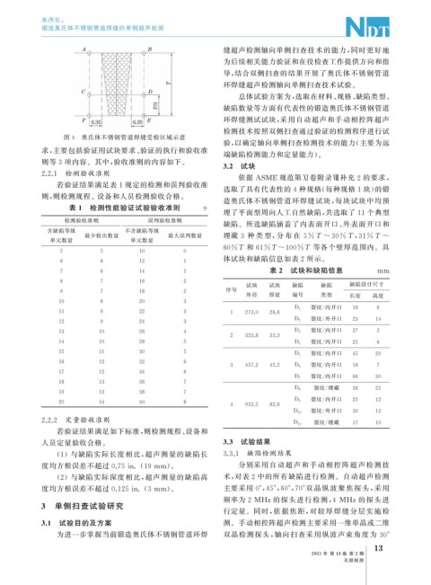 3.1 试验目的及方案 测。手动相控阵超声检测主要采用一维单晶或二维
