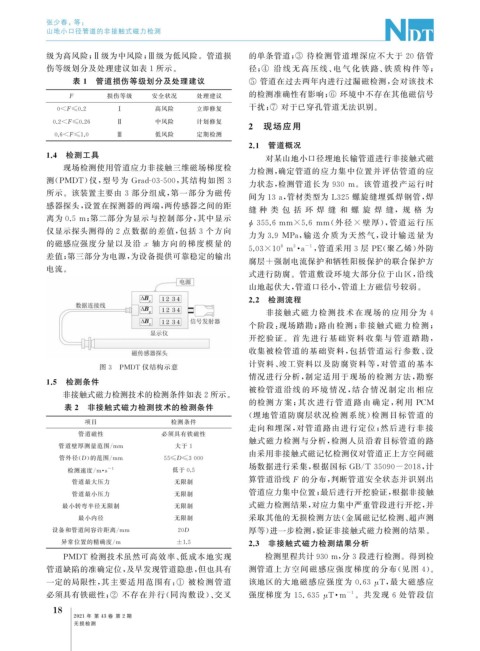 表 2 非接触式磁力检测技术的检测条件 的检测方 案; 其 次 进 行 管 道 路 由 确 定, 利 用 PCM