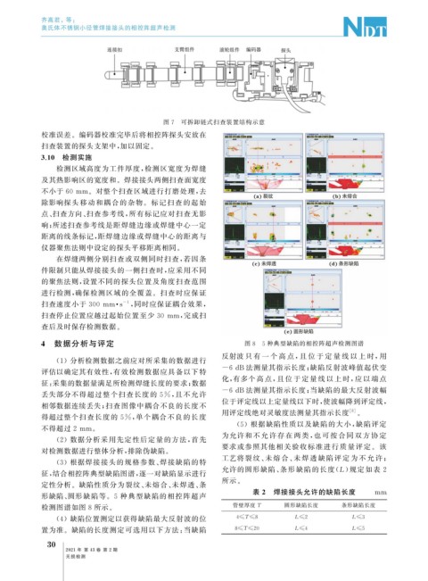 4 数据分析与评定 图 8 5 种典型缺陷的相控阵超声检测图谱