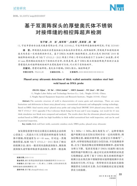 Ke ywords : thickwallbuttweld ; austeniticstainlesssteel ; DMAp robe ; p hasedarra yultrasonic