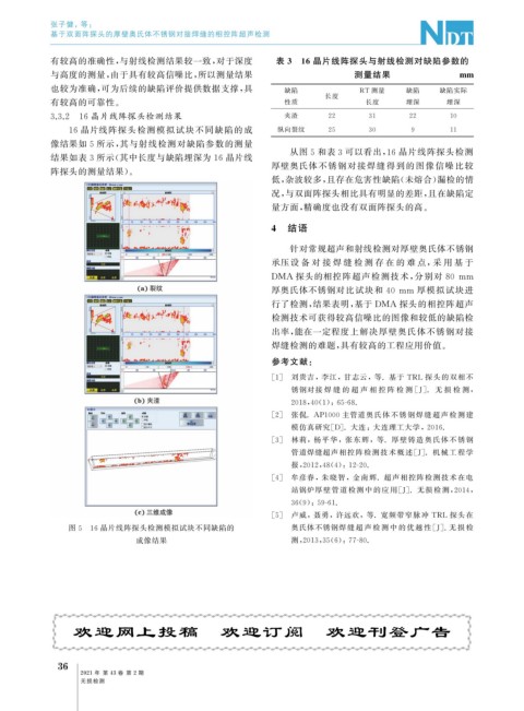 锈钢对接 焊 缝 的 超 声 相 控 阵 检 测 [ J ] . 无 损 检 测,