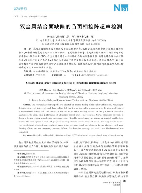 关键词:双金属涡轮盘;扩散焊; CIVA 仿真;凸面相控阵超声检测