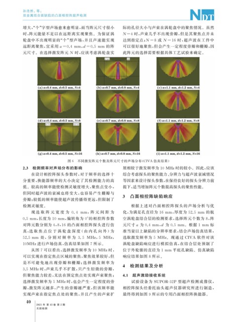 增大,“ 个” 字型声场愈来愈明显, 而当阵元尺寸很小 际的孔径大小与声束在涡轮盘中的聚焦情况。虽然