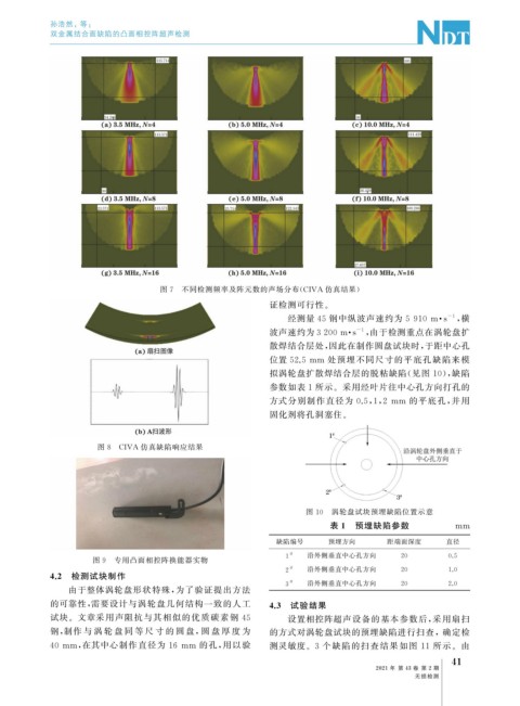 钢, 制作 与 涡 轮 盘 同 等 尺 寸 的 圆 盘, 圆 盘 厚 度 为 的方式对涡轮盘试块的预埋缺陷进行扫查,确定检