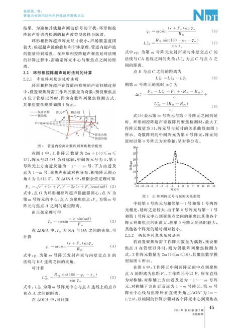 φ 1 = arcsin ( 4 ) 焦点 A 在管壁以外 时, 则 为 偶 数 阵 列 聚 焦 检 测 方