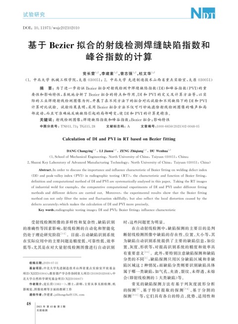 关键词:射线检测图像; 焊缝缺陷指数和峰谷指数; Bezier拟合; 影响特性
