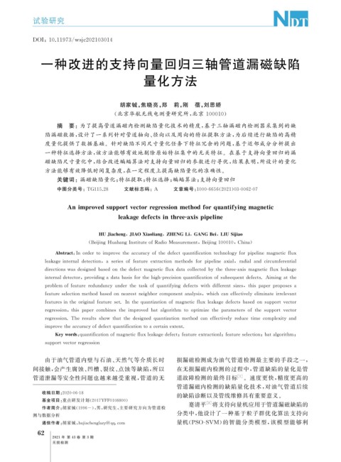 一种改进的支持向量回归三轴管道漏磁缺陷