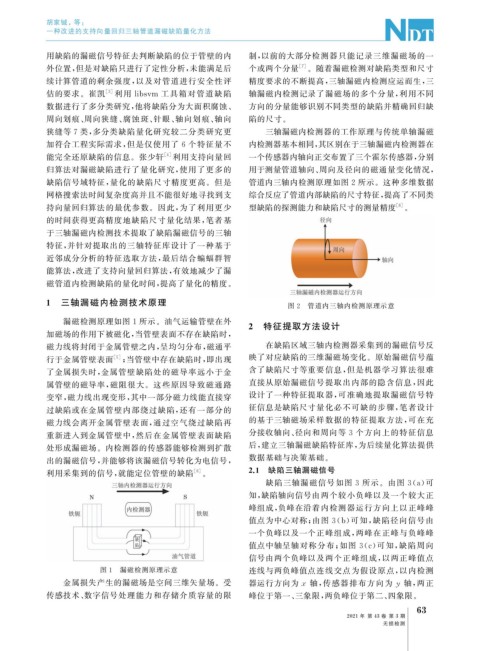 属管壁的磁导率, 磁阻很大。这些原因导致磁通路 直接从原始漏磁信号提取出内部的隐含信息, 因此