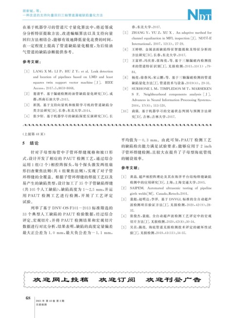 ( 共105个人工缺陷), 缺陷高度为 1~2.5mm , 并运 [ 2 ] SAIPEM.Automated ultrasonictestin g of p i p eline