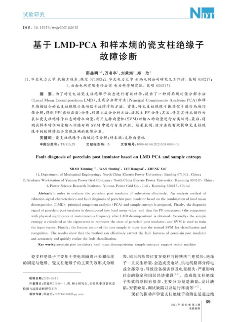 本熵相结合的瓷支柱绝缘子振动信号故障诊断方法。首先, 将瓷支柱绝缘子振动信号进行局域均