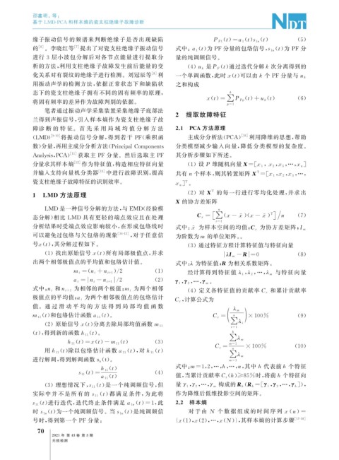 的 [ 6 ] 。李晓红等 [ 7 ] 提出了对瓷支柱绝缘子振动信号 式中: a 1 t 为 PF 分量的包络信号, s 1n t 为 PF 分