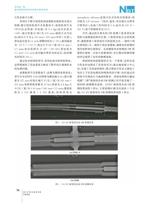 素为127 μ m ; 有效区域尺寸( 长 × 宽) 为 424 mm× 线路“ 三跨” 耐张线夹的 DR 检测已经开始实施了一