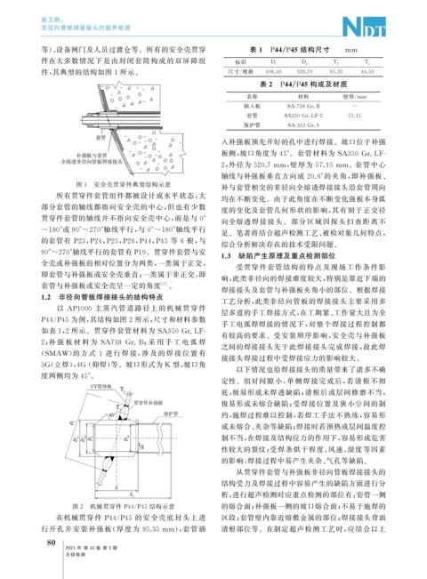 行开孔并安装补强板( 厚度为 95.35mm ), 套管插 清根部位等。在制定超声检测工艺时, 应结合以上
