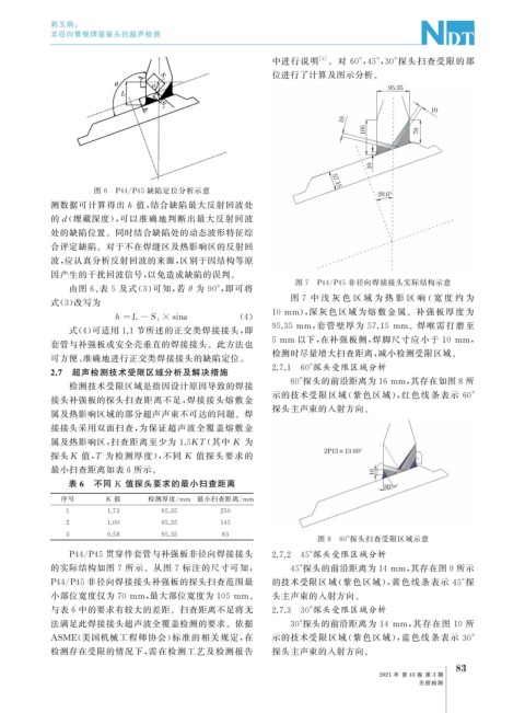 与表 6 中的要求有较大的差距。扫查距离不足将无 2.7.3 30° 探头受限区域分析