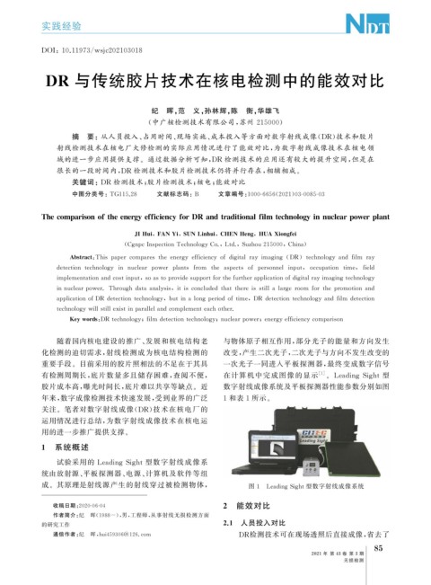 关键词: DR 检测技术; 胶片检测技术; 核电; 能效对比