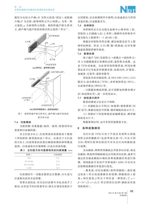 主、 副声阑与超声波束的相关性示意图 7 所示 [ 2 ] 。 采样频率至少应为探头标称中心频率的 5 倍。