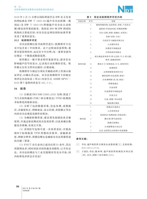 2018 年 6 月 10 日曾以国际焊接学会IIW 名义发布 表 5 双全法检测程序评定内容