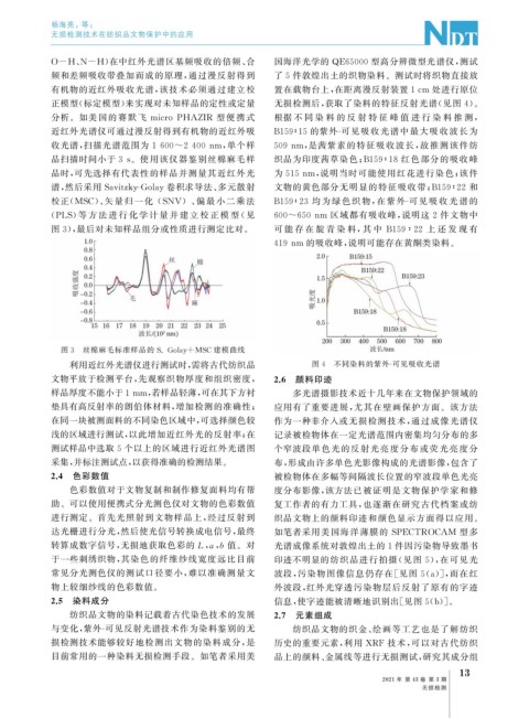 分析。如美国的赛默 飞 microPHAZIR 型 便 携 式 根据 不 同 染 料 的 反 射 特 征 峰 值 进 行 染 料 推 测,