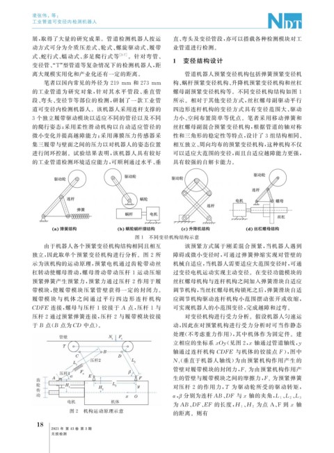 式、 蛇行式、 蠕动式、 多足爬行式等 [ 3-7 ] 。针对弯管、