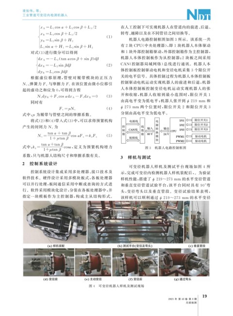 指定一块模板作为主控制器, 构 成主从结构形式。 该样机可以顺利通过 ϕ 219~273mm 的水平变径