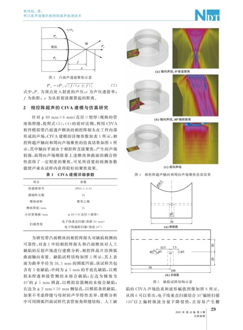表 1 CIVA 建模详细参数 图 4 相控阵超声轴向和周向声场聚焦仿真结果