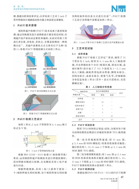 测、 数据分析和结果评定, 以评估该工艺对 2inch 子 发两组 扇 形 的 扫 查 方 式 进 行 扫 查 [ 2 ] , PAUT 检 测