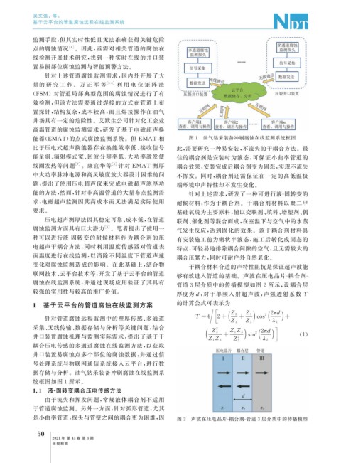 能器( EMAT ) 的点式腐蚀监测系统。但 EMAT 相 图 1 油气钻采装备冲刷腐蚀在线监测系统框图
