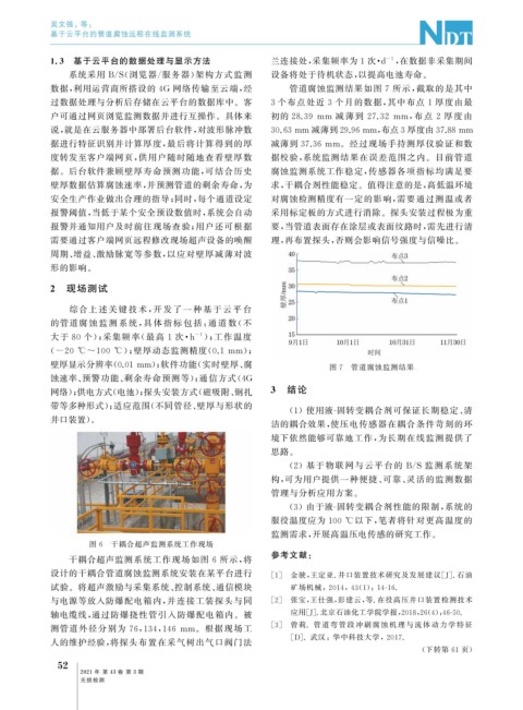数据, 利用运营商所搭设的 4G 网络传输至云端, 经 管道腐蚀监测结果如图 7 所示, 截取的是其中
