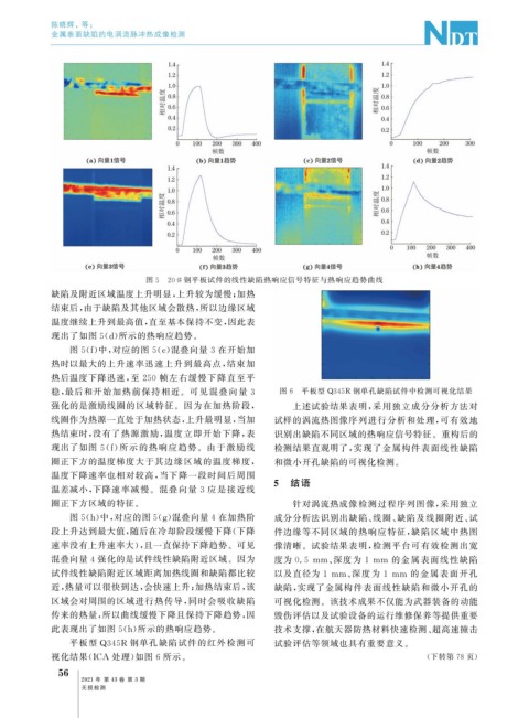现出了如图 5 ( f ) 所示的热响应趋势。由于激励线 检测结果直观明了, 实现了金属构件表面线性缺陷