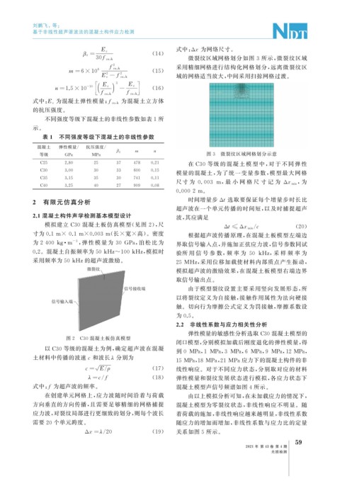 0.2 。混凝土自振频率为 50kHz~100kHz , 模拟时 验所 用 信 号 参 数, 频 率 为 50 kHz , 采 样 频 率 为