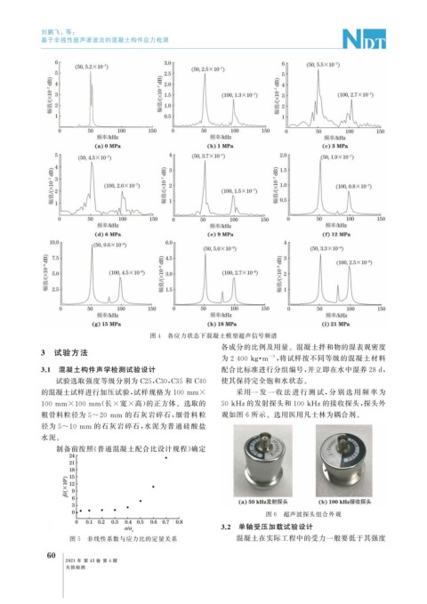 的混凝土试样进行加压试验, 试样规格为 100mm× 采用一 发 一 收 法 进 行 测 试, 分 别 选 用 频 率 为