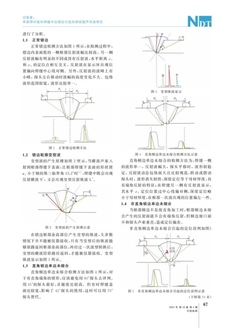 1.2 错边轮廓变型波 图 4 直角顿边单边未熔合检测方法示意