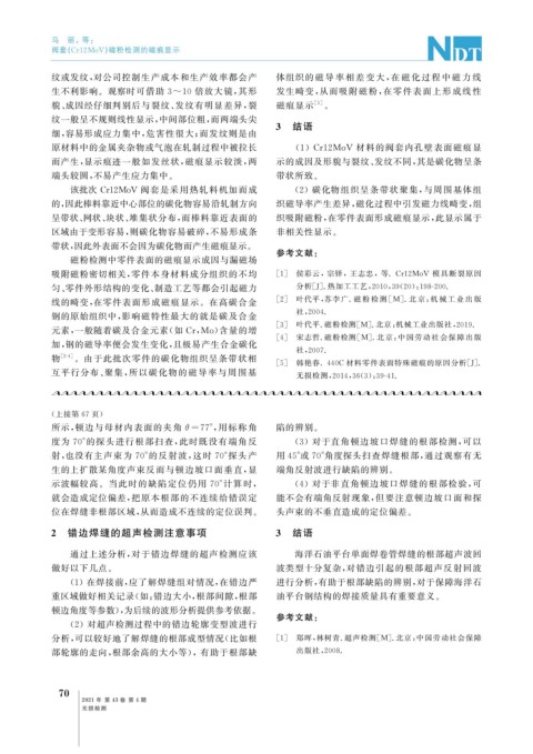线的畸变, 在零件表面形成磁痕显示。在高碳合金 [ 2 ] 叶代平, 苏李 广 . 磁 粉 检 测 [ M ] . 北 京: 机 械 工 业 出 版