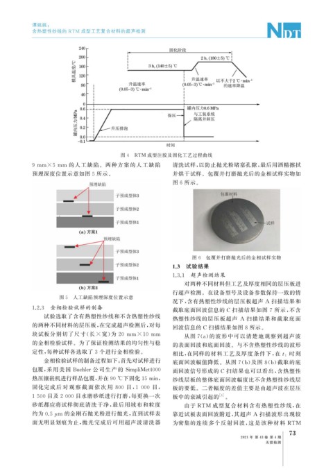 砂纸都应将试样彻底清洗干净, 最后用绒布和粒度 由于 RTM 成型复合材料含有热塑性纱线, 在