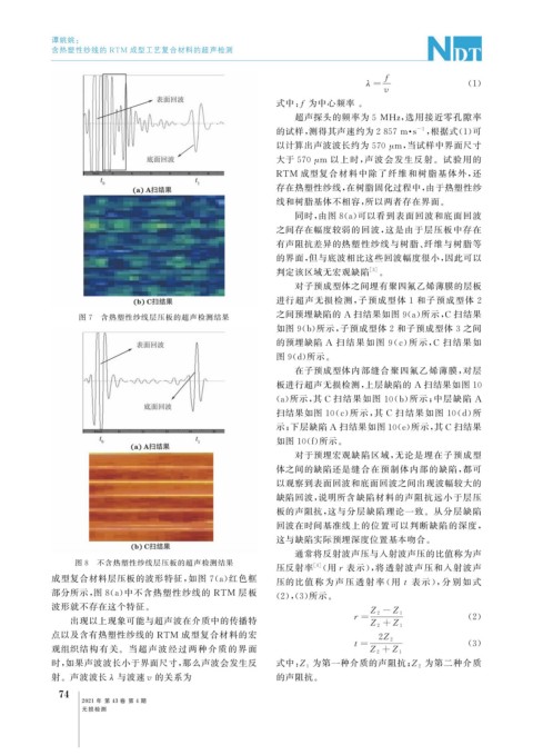 成型复合材料层压板的波形特征, 如图 7 ( a ) 红色框 压的比值 称 为 声 压 透 射 率 ( 用t 表 示), 分 别 如 式