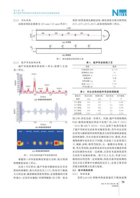 由表 2 可以看出, 超声导波对缺陷的定位具有 其他无损检测方法进行复验。