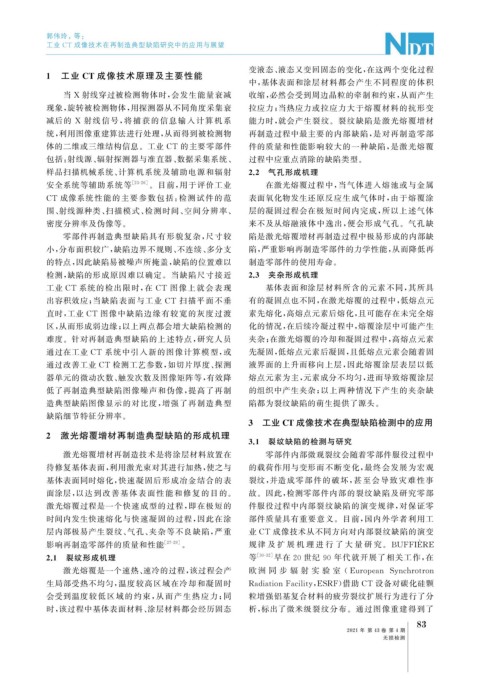 体的二维或三维结构信息。工业 CT 的主要零部件 件的质量和性能影响较大的一种缺陷, 是激光熔覆