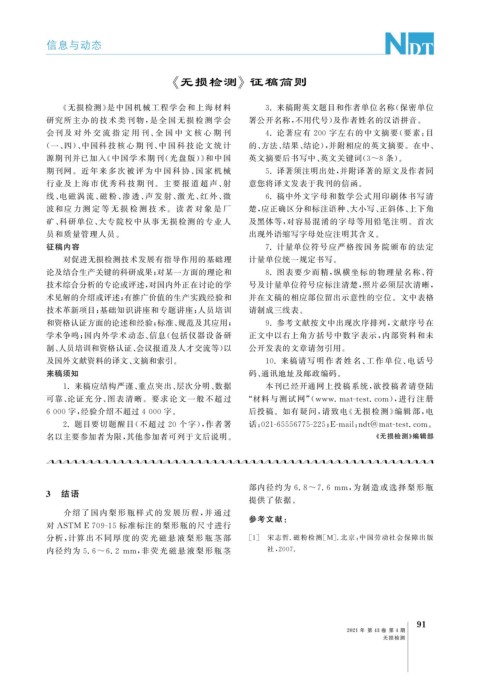 6000 字, 经验介绍不超过 4000 字。 后投稿。如有疑问, 请致电 《 无损检测》 编辑部, 电