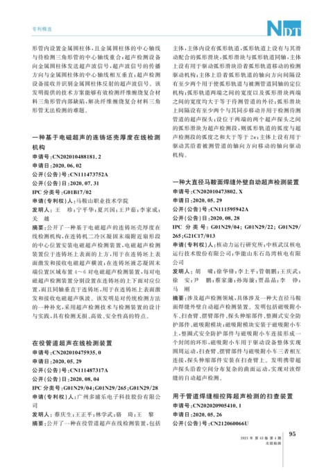 公开( 公告) 日: 2020.08.04 缝的自动超声检测。