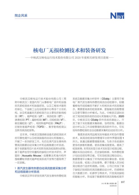 渗透检测(PT)、磁粉检测(MT)、目视检测(VT)、 年,中核武汉在 CEddy 软件系统的基础上,开