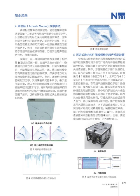 置扇形扫查方式及内部时钟采集,开始采集数据 超声检测,检查装置主要包括浮游装置和专用探
