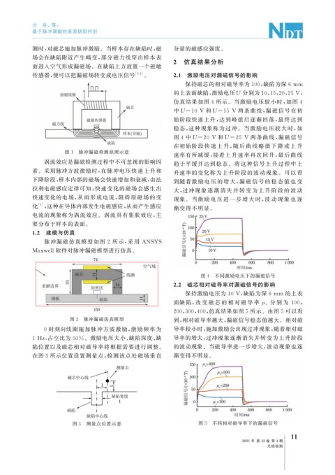 面进入空气形成漏磁场。在缺陷上方放置一个磁敏 2 仿真结果分析